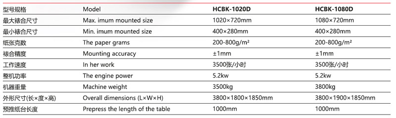 HCBK-1020/ 1080D自動單工位卡紙裱合機,底紙采用PLC控制的飛K達輸送機,使輸紙過程平穩準確,底紙上膠部根據不同紙張的要求,在不停機狀態下來調整膠水涂布量,提高工作效率。